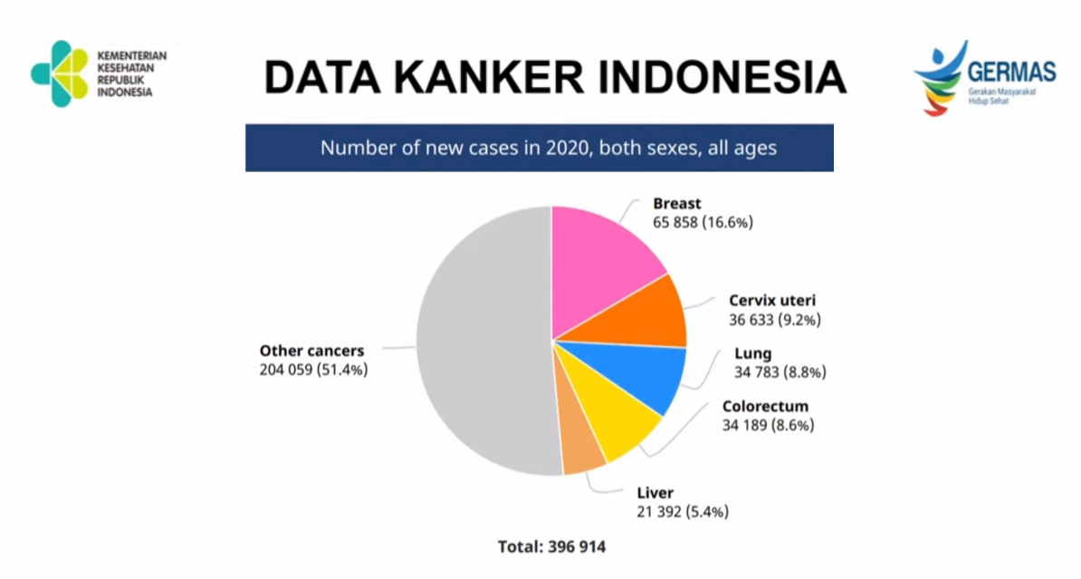 Jumlah kasus baru kanker payudara mencapai 66.217 kasus (16,2%) dari total 408.661 kasus baru kanker di Indonesia. (GLOBOCAN, 2022).